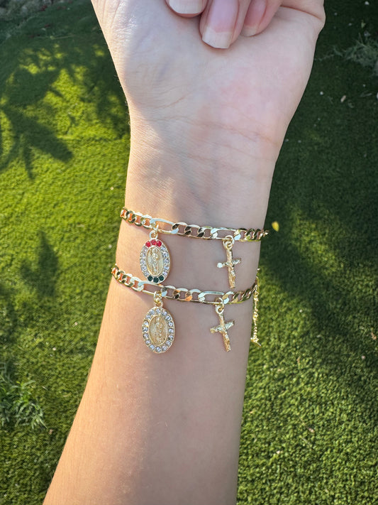 18k Gold Plated Unisex Virgencita Bracelet with Our Lady of Guadalupe Charm