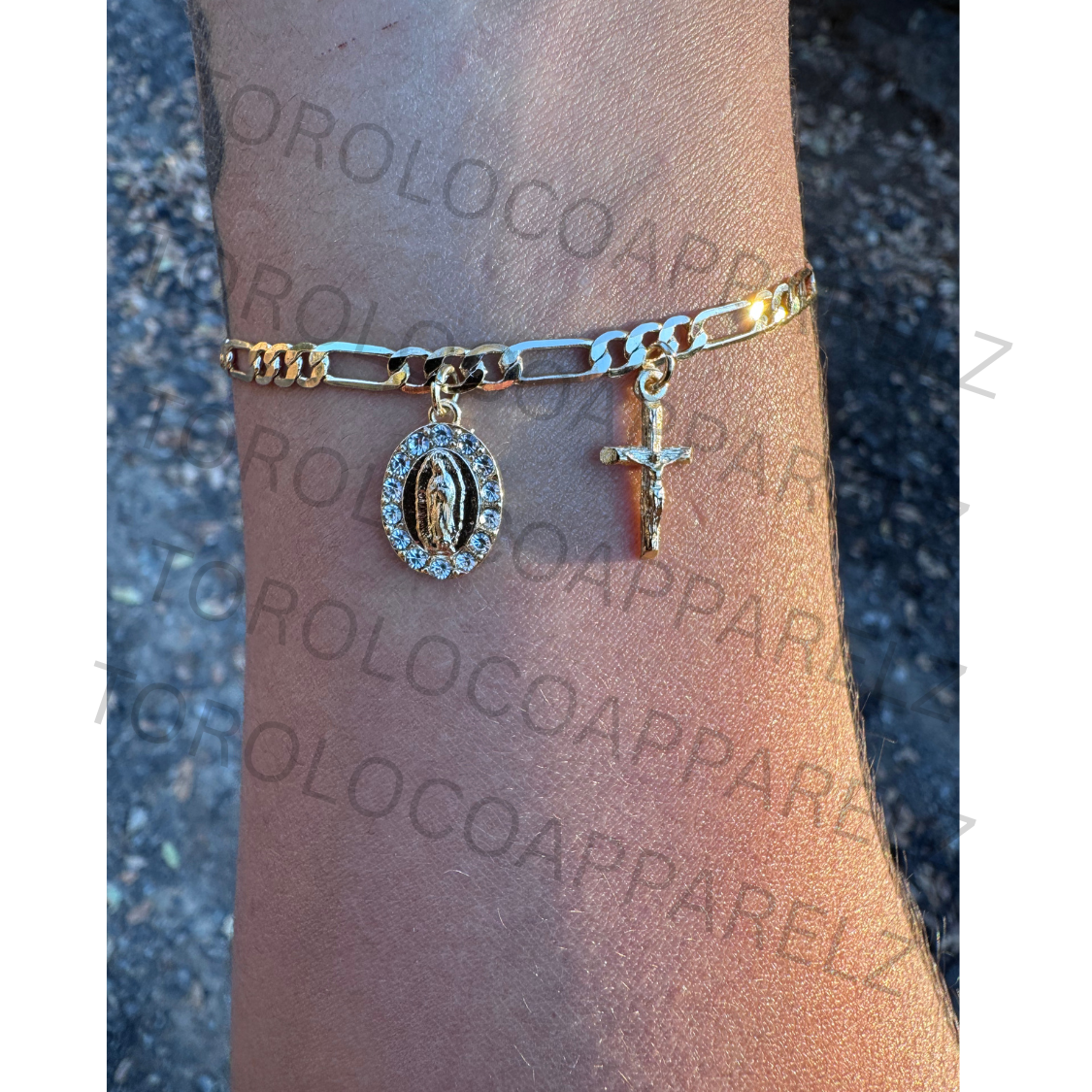 18k Gold Plated Unisex Virgencita Bracelet with Our Lady of Guadalupe Charm